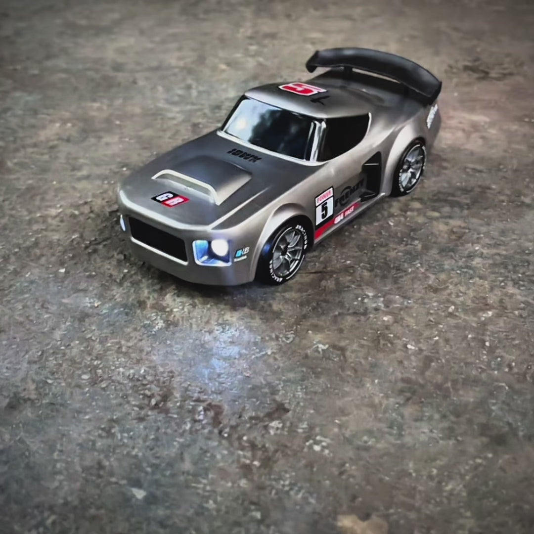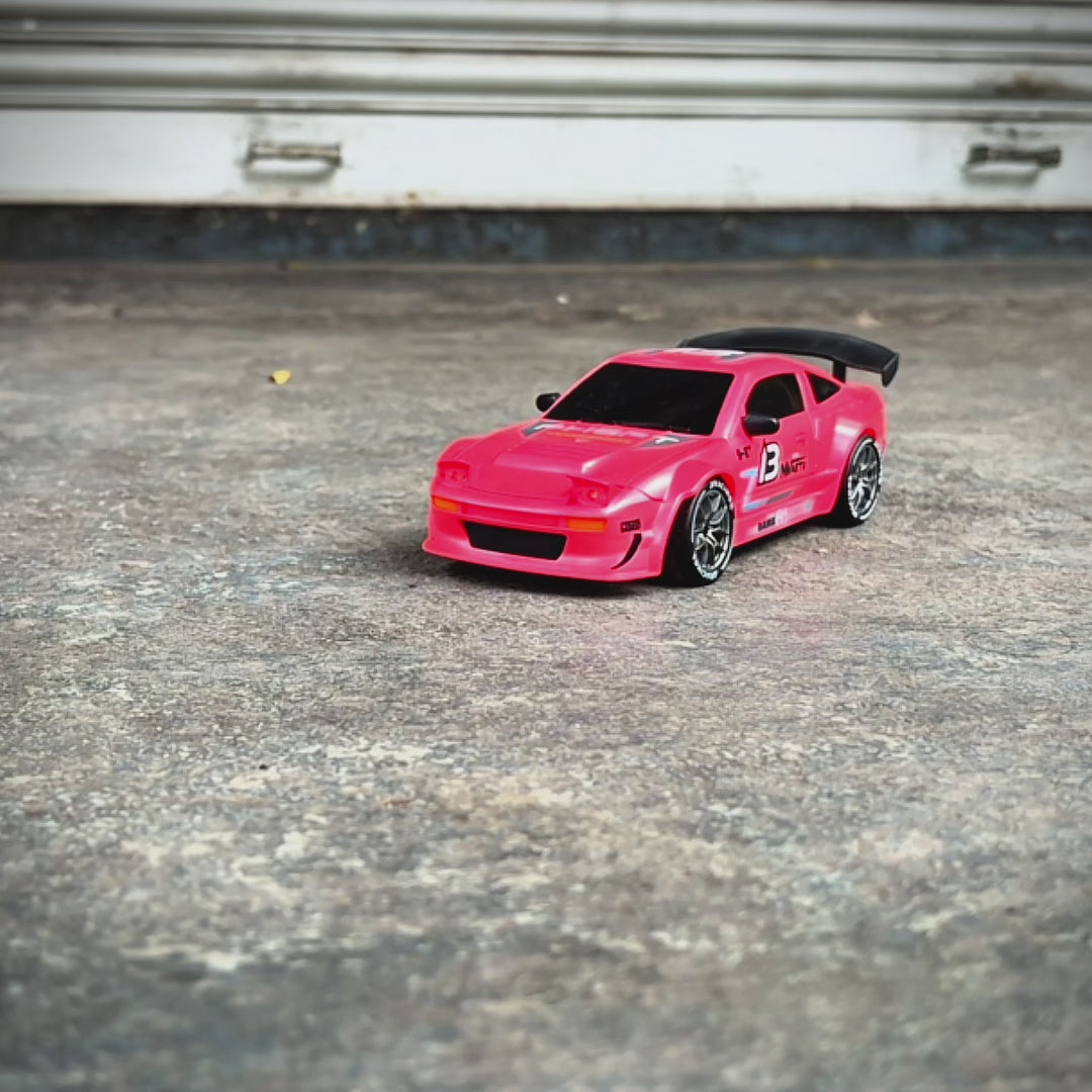 Buy Flare, a 4x4 RC Drift Remote Control Car in India by L.O.T Cars. • High-Speed Drifter: Experience thrilling adventures with our Remote Control Car, which offers dual speed modes, reaching speeds of up to 20 Kmph. Perfect for both kids and adults who love racing! • Equipped with LED headlights and tail lights, this car not only ensures visibility during low-light conditions but also adds a sleek and stylish flair to every race. • Smooth tires are engineered for the ultimate drifting experience, letting you glide effortlessly around every corner with precision and unmatched style • Switch to the grip tires and take speed to the next level, gripping the track with power and precision • The hard plastic top gives the car a sleek, race-ready look